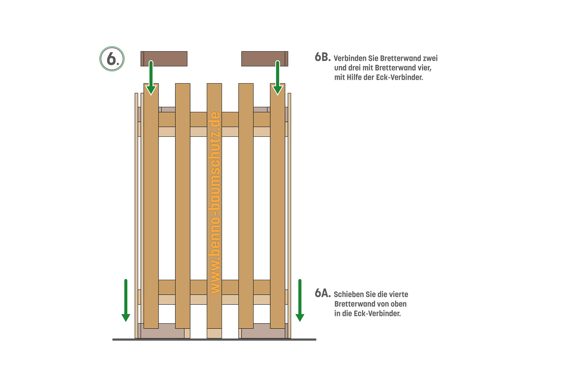 Mit unserem einzigartigen Stecksystem wird der Benno-Baumschutzkasten aus baugleichen Modulen mit 1,2m Breite und entsprechenden Eck- oder Geradeverbindern zusammengesetzt. Somit können Sie die Kästen in unterschiedlichen Abmessungen ohne weiteres Werkzeug auf Ihrer Baustelle individuell aufbauen.