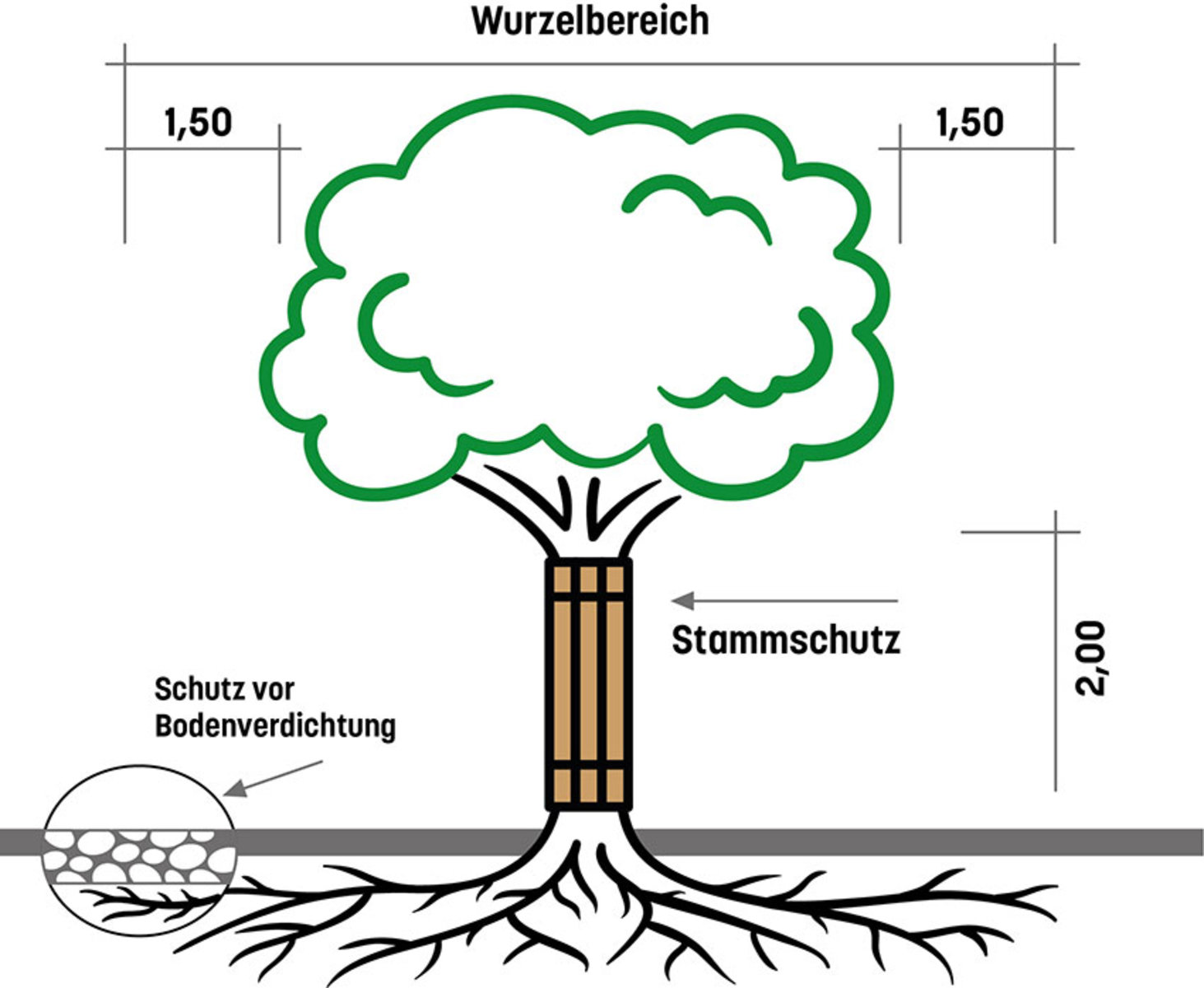 Ein gut sichtbarer und ordentlicher Baumschutz ist ein Aushängeschild für jedes Bauunternehmen.